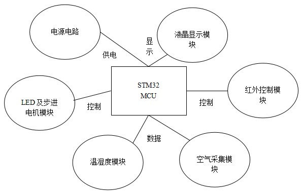 智能家居控制系统的主要功能是采集空气并分析,采集室内的温度与适度数据,采集光照数据,红外的发送与接受,控制电机的转动,以及OLED显示。